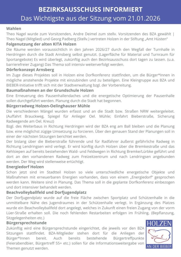 Von Kita bis Energiedorf: Bezirksausschuss treibt Projekte in Holzen voran